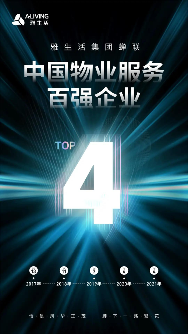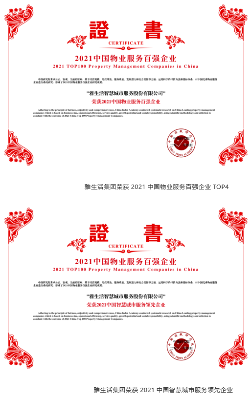 雅生活蟬聯(lián)中國物業(yè)服務(wù)百強企業(yè)TOP4,持續(xù)鞏固行業(yè)龍頭地位